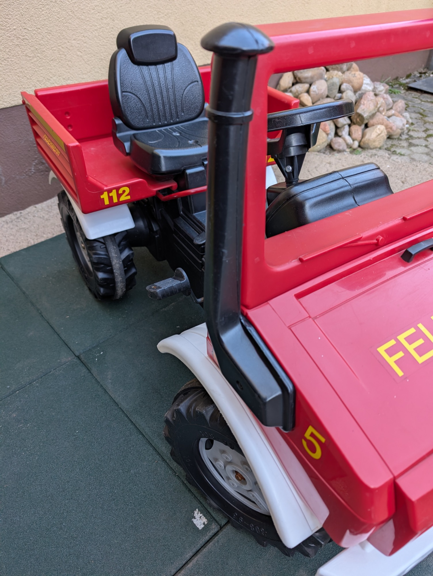 Fahrzeug optional erweiterbar durch Seilwinde oder weitere Trailer. Sitz verstellbar. Abnehmbares Blaulicht.